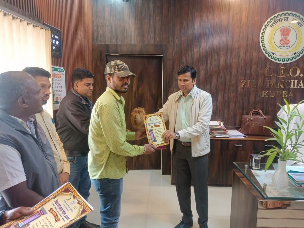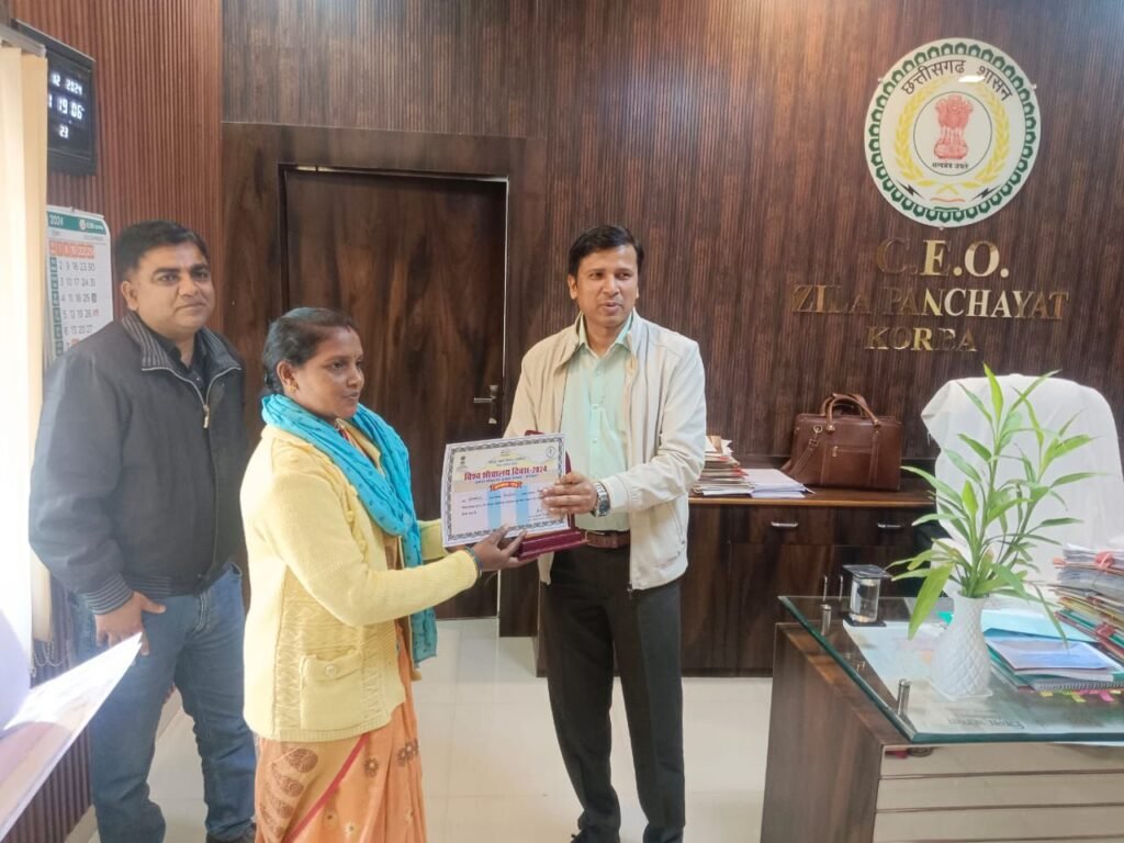 इसी क्रम में आज जिला पंचायत कोरबा में तीन उत्कृष्ट सामुदायिक शौचालय वाले गांव के सरपंचों को क्रमशः कटघोरा ब्लॉक अंतर्गत ग्राम सलोरा (क) सरपंच श्रीमती महेश्वरी तवर, पोड़ीउपरोड़ा ब्लॉक अंतर्गत ग्राम बंजारी सरपंच चंद्रपाल आर्मो, कोरबा ब्लॉक के ग्राम कोरकोमा सरपंच श्रीमती रूपेश्वरी राठिया को तथा ग्रामीण क्षेत्रो के कुल पॉच उत्कृष्ट घरेलू शौचालय के हितग्राही क्रमशः ग्राम कोलिहामुड़ा से रामअवतार बघेल, ग्राम कोरकोमा से अशोक कुमारी, ग्राम रीवंापार से श्रीमती उमा पटेल, ग्राम सिरकीखुर्द से श्रीमती पूर्णिमा श्याम व ग्राम अमलडीहा से श्रीमती इंद्रकुमार केवट को जिला पंचायत सी.ई.ओ. दिनेश कुमार नाग के कर कमलों से स्मृति चिन्ह, प्रशस्ति पत्र व श्रीफल भेट कर सम्मानित किया गया।