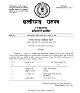 रायपुर ।छत्तीसगढ़ में आरक्षण प्रक्रिया के पूरे होते ही अब नगरीय निकाय चुनाव की तैयारियां तेज हो गई है। राज्य सरकार ने नगर निगम महापौर, नगर पालिका और नगर पंचायतों में अध्यक्ष पद के आरक्षण को लेकर राजपत्र में प्रकाशन किया है।
