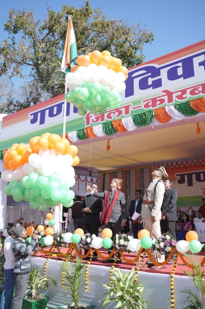 इस अवसर पर अनेकता में एकता के प्रतीक गुब्बारे आकाश में छोड़े गये। गणतंत्र दिवस के अवसर पर जिले के शहीदों के परिजनों को शॉल, श्रीफल भेंट कर विशेष सम्मान किया गया और वीर सेनानियों की शहादत के प्रति कृतज्ञता व्यक्त की गई।